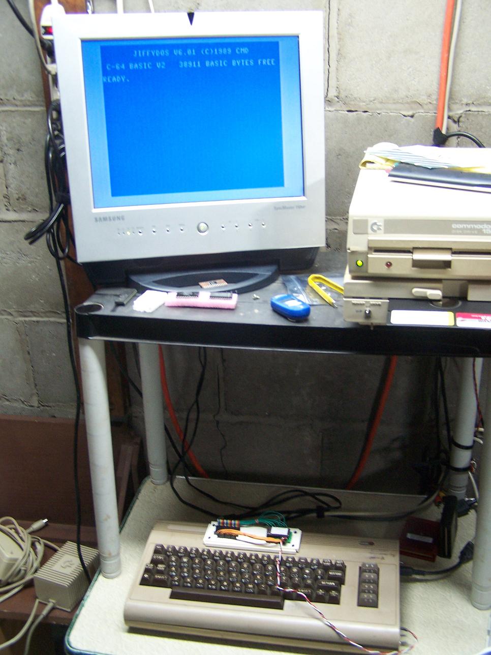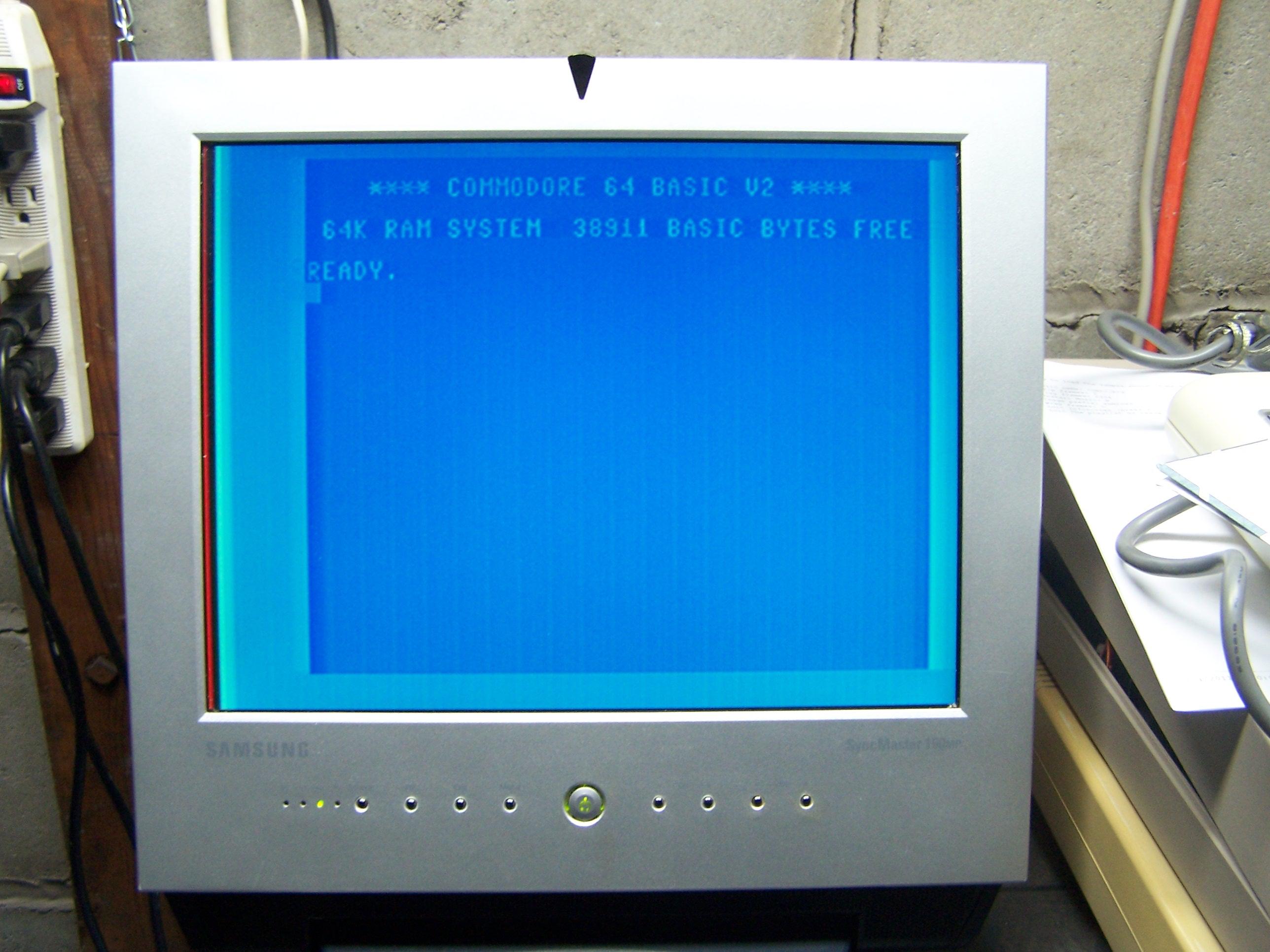 A couple days agon a friend of mine, mhoney on IRC sent me a Samsung Syncmaster 150MP LCD Monitor & TV to use on my C= system. It has an svideo input port on it so I purchased an Svideo cable from a guy in the UK on ebay. Here is a picture of the Monitor with the C64 booted up. As soon as the remote for the TV arrives, I'll play with the video a bit more, I want to make some adjustments as you can see from the picture that need to be completed.