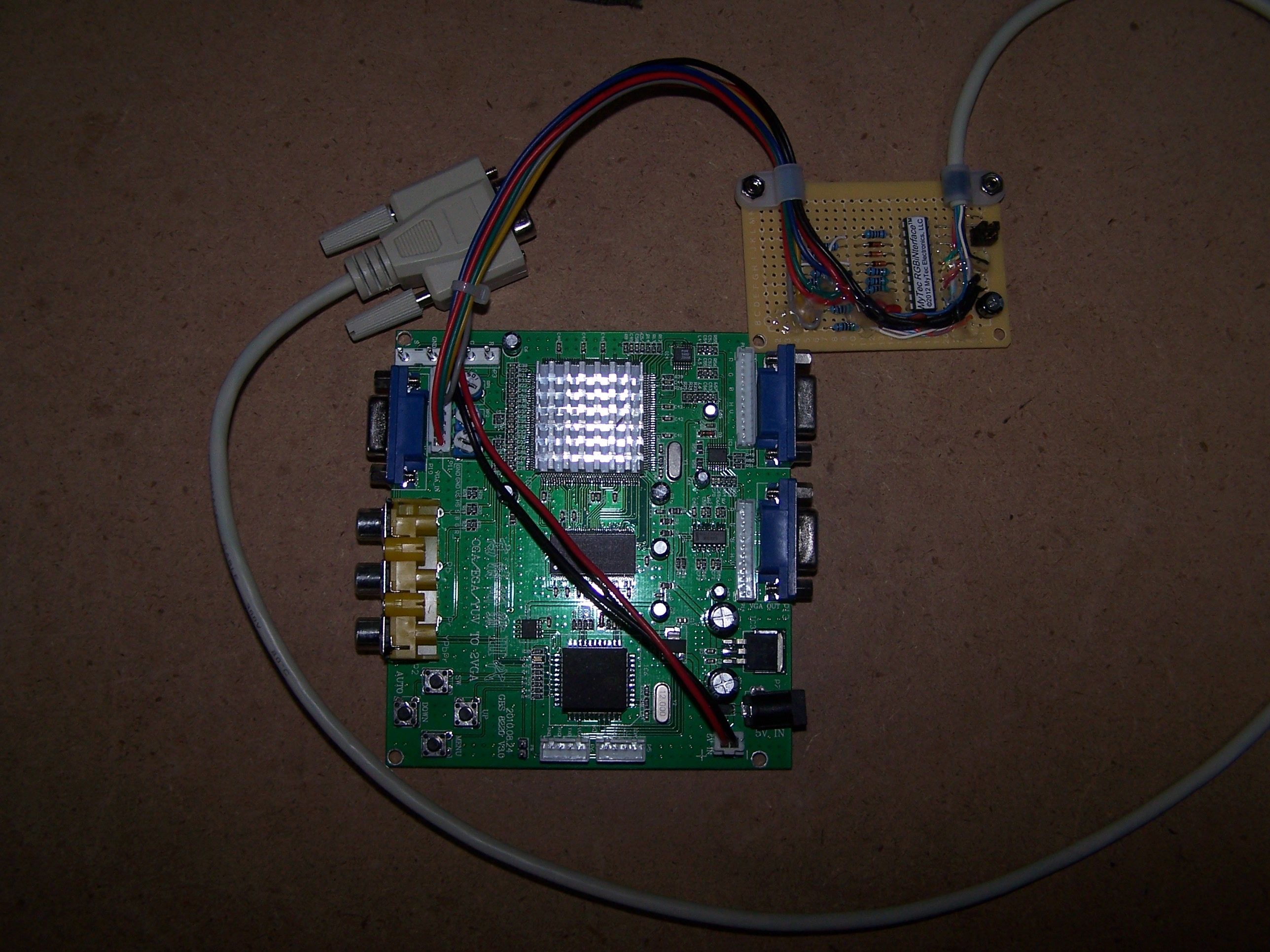 A couple days ago I ordered an "RGBiNterface" from MyTec Electronics. Same place that makes the ThunderDrive. They are currently only produced as they are ordered. If you would like info/order one send email to "workspace AT wowway.com" The other board is a (eBay Link) video converter used to connect Arcade JAMMA game boards to VGA monitors. I used the Model 8220 type board as seen in the 3rd picture.