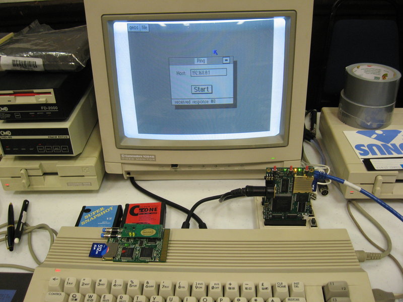 My machines, all set up (the one on the right has booted GEOS from a 1541 Ultimate).