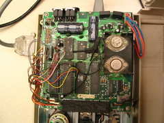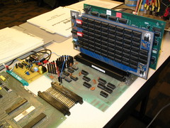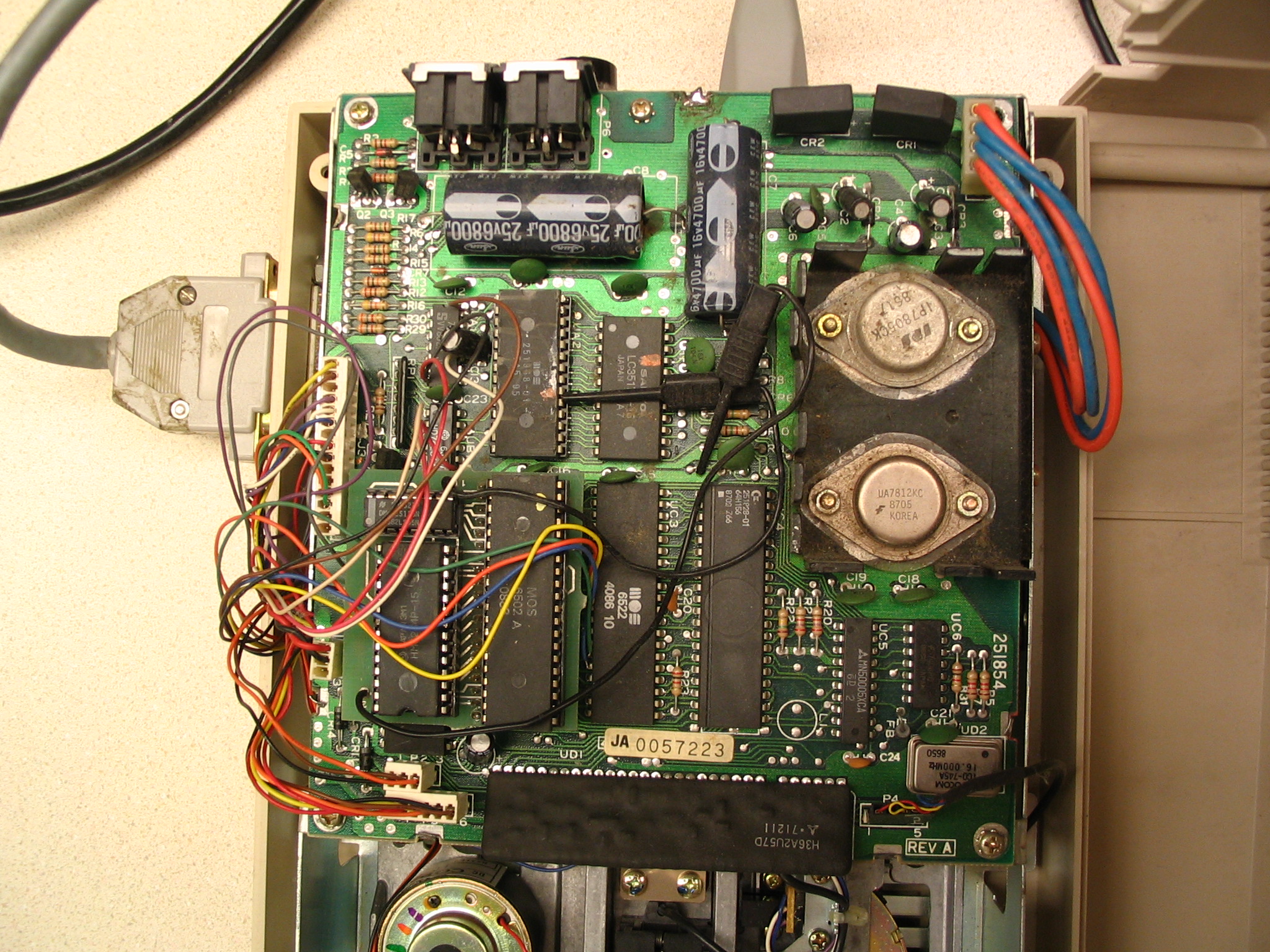 The inside of the 1541, showing its SuperCard RAM expansion.