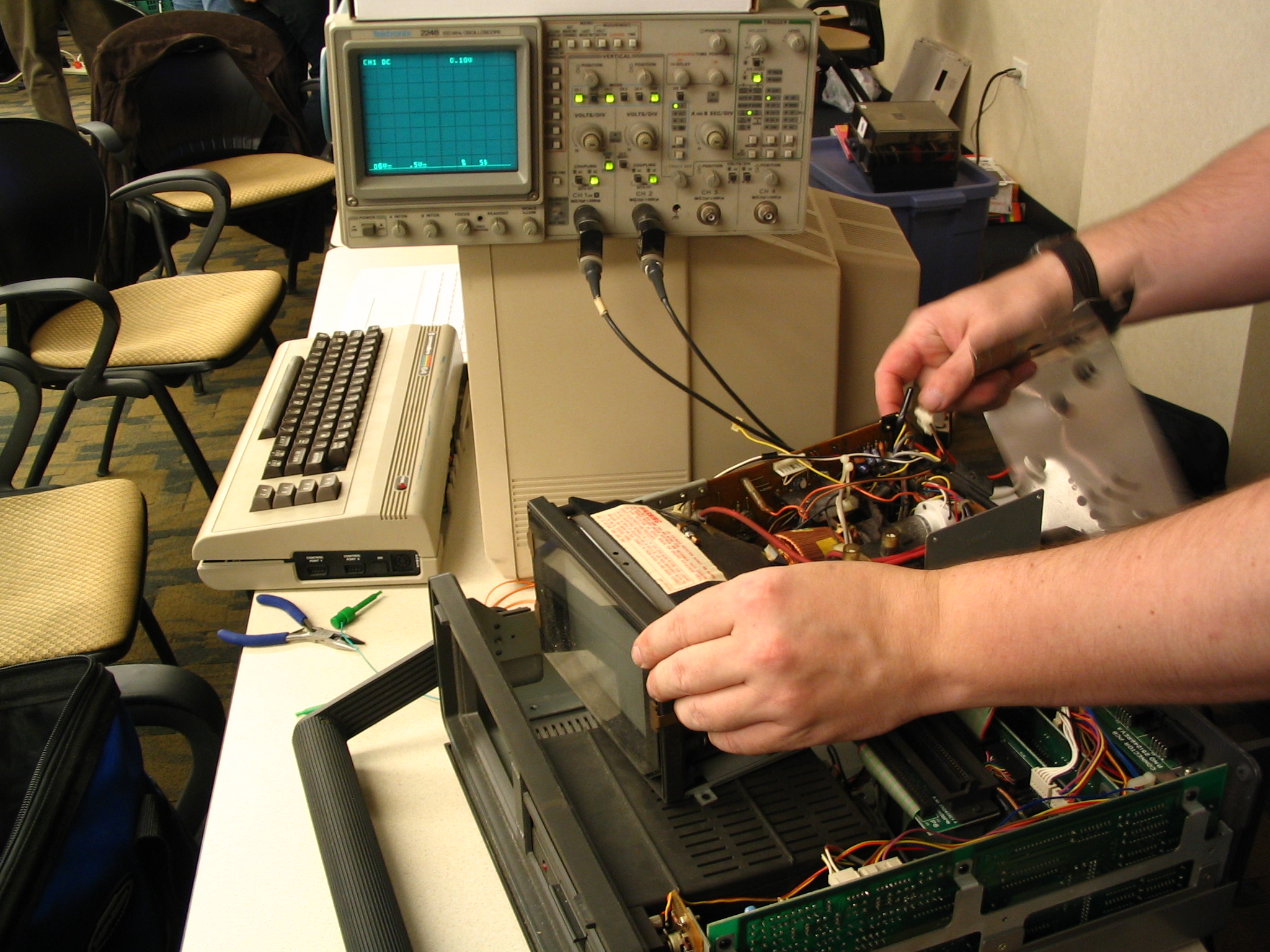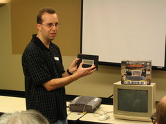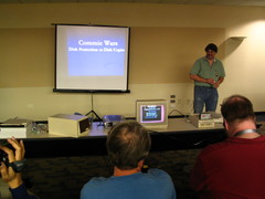Craig Ernster's presentation on copy protection, "Commie Wars". Fast Hack'Em can be seen on the CRT.