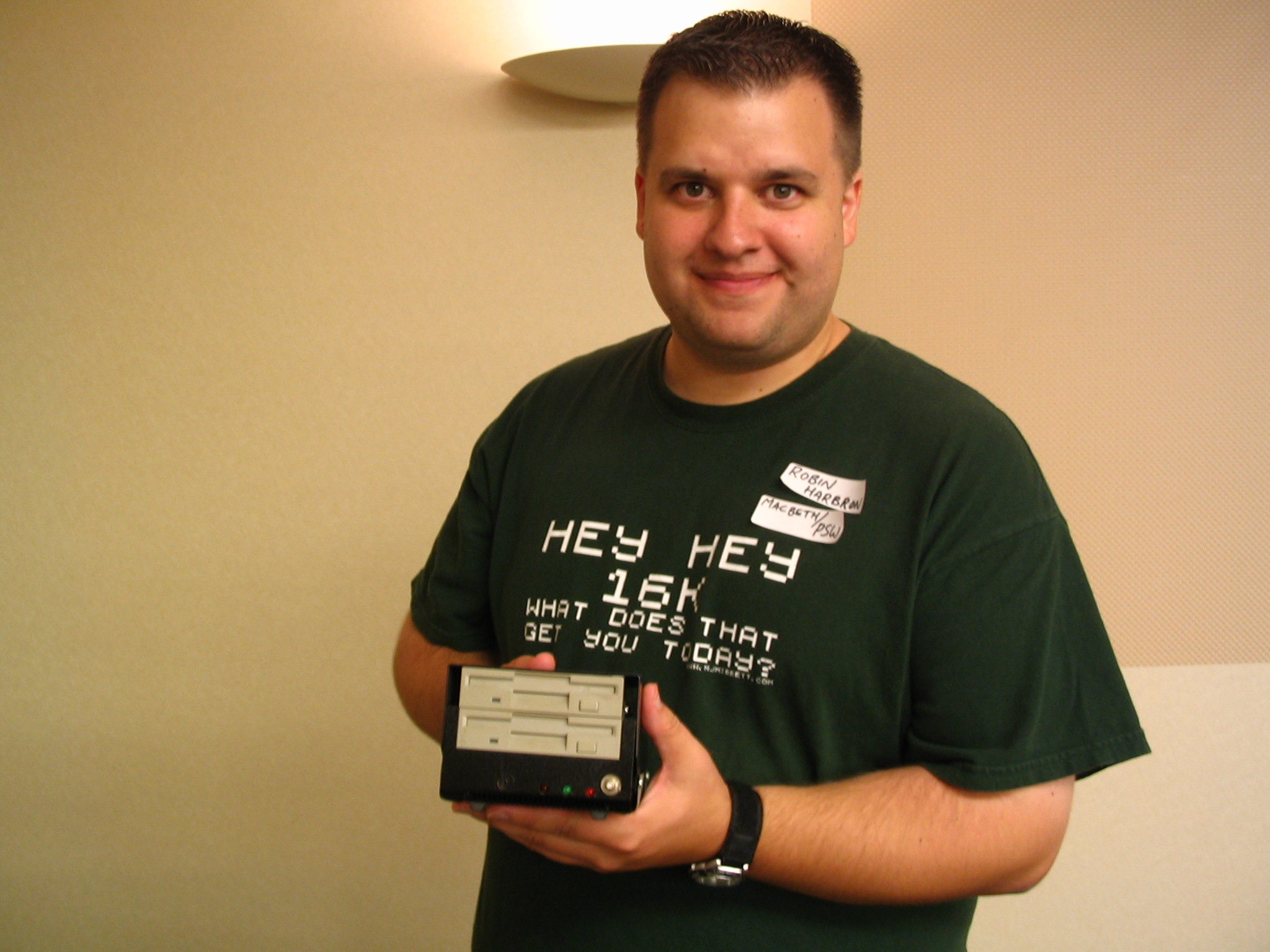 Robin Harbron with an extremely rare dual FD drive from CMD. Only a few are