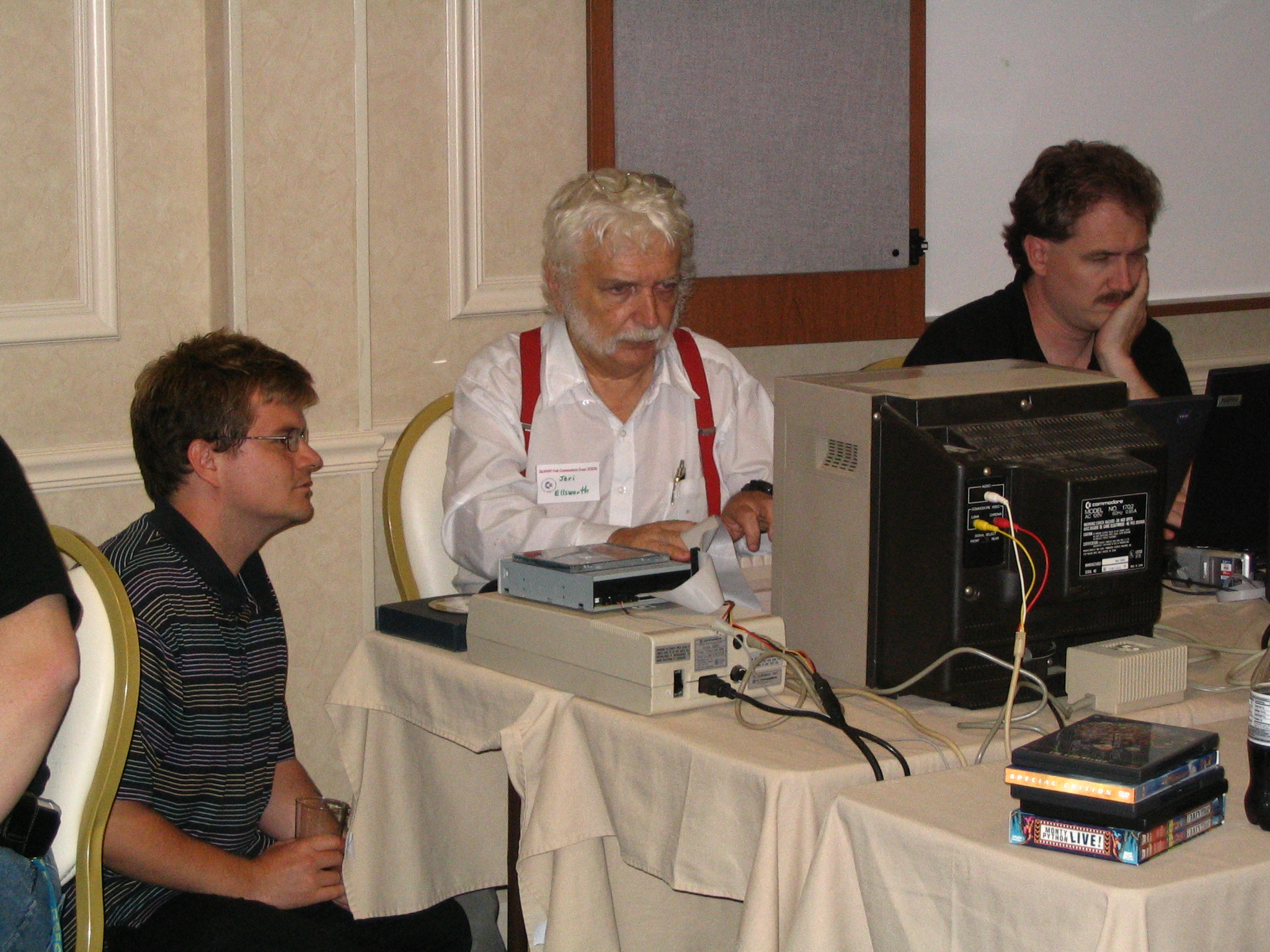 Jim Butterfield talks with Dave Haynie (right), one of the original Commodore