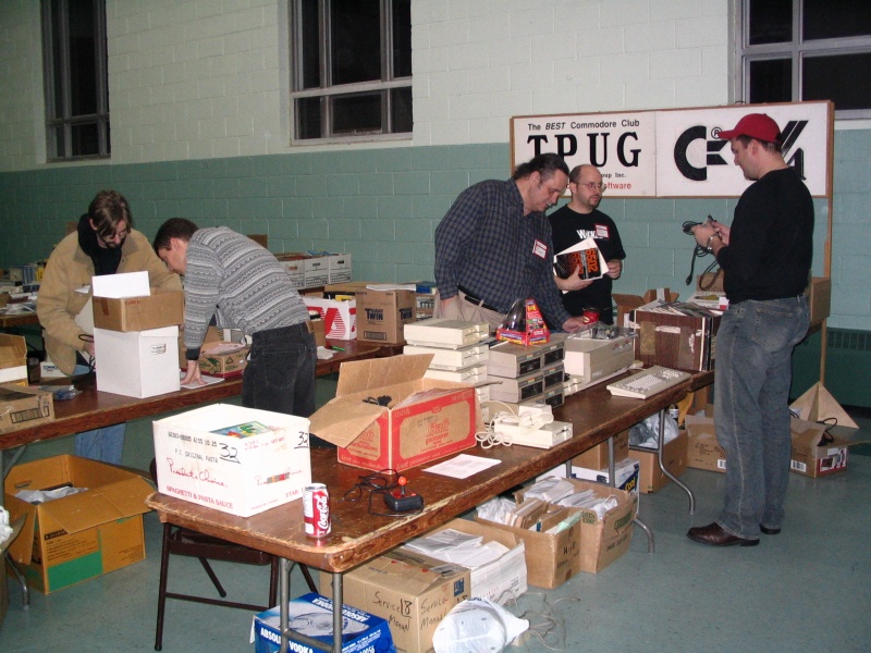 McIntosh, conducts the bag raffle (I won a Commodore LCD watch!). Jim later