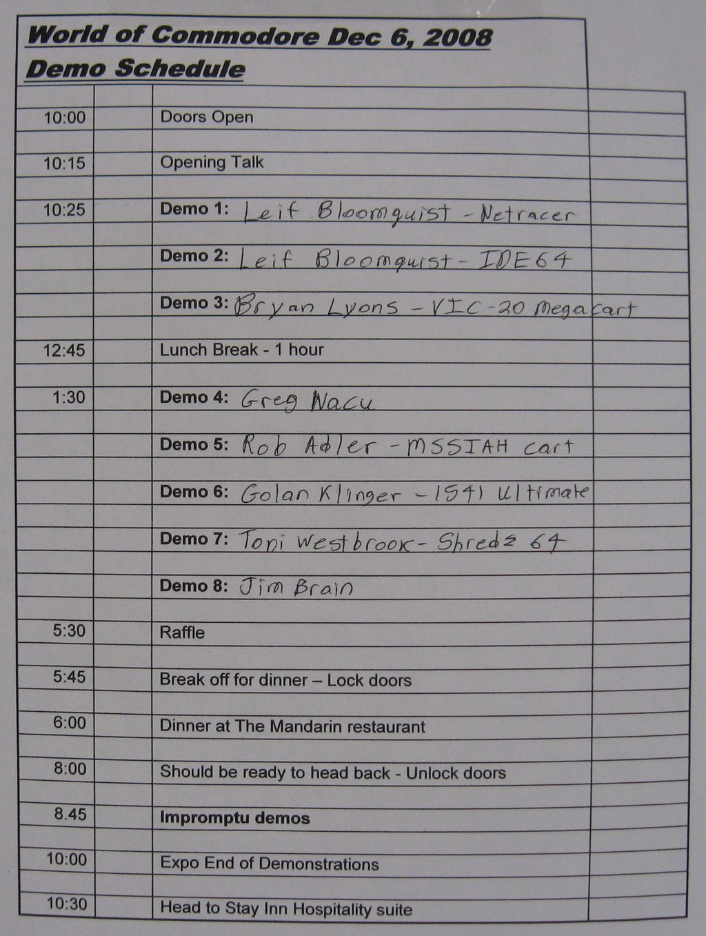 The demo schedule for WoC 2008.