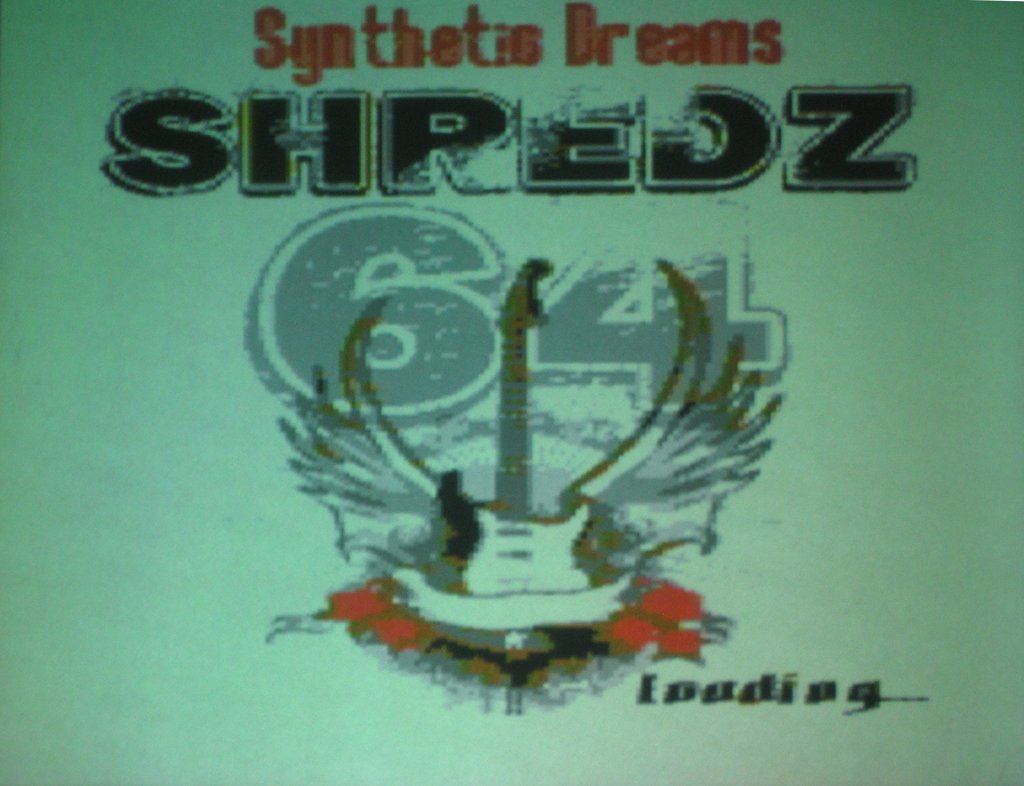 The Shredz64 splash screen. Shredz is a C64 port of Guitar Hero; see