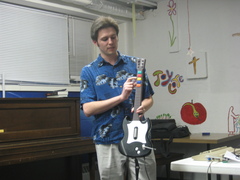 Toni explains how the guitar controller is interfaced (functions that