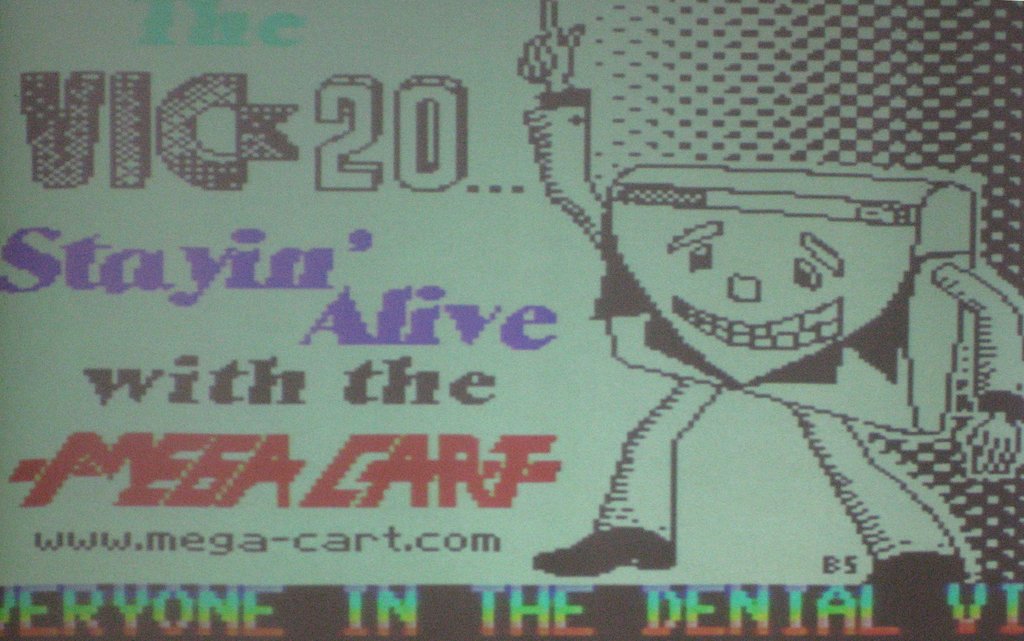 Splash screen of the VIC-20 MegaCart, which allows switching in